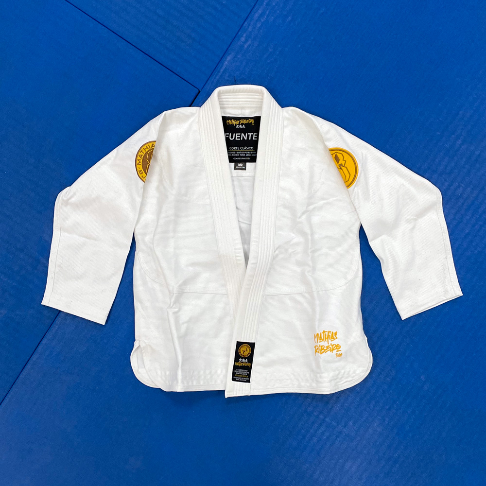 🥋 Kimono BJJ Niño Oficial Mathias Ribeiro Team 2025 – Blanco (Pearl Weave 320 g/m²)